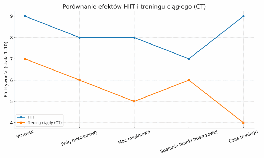 HIIT poprawia gospodarkę glukozowo-insulinową oraz korzystnie wpływa na profil lipidowy poprzez obniżenie stężenia triglicerydów i podniesienie poziomu HDL. Te efekty mają znaczenie nie tylko w sporcie, ale również w profilaktyce chorób metabolicznych.